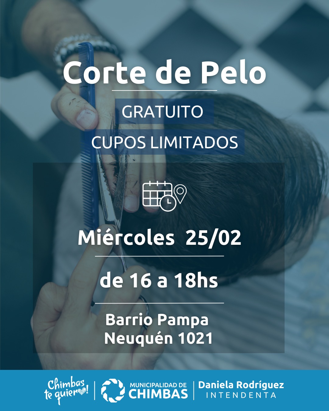 Este Miercoles 25 de febrero, estaremos realizando corte de cabello de forma gratuita (mayores de 6 años y adultos) en el Barrio Pampa.