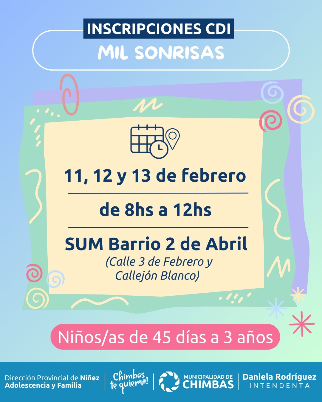 Los días 11, 12 y 13 de febrero, se realizarán las inscripciones de los Centros de Desarrollo Infantil.