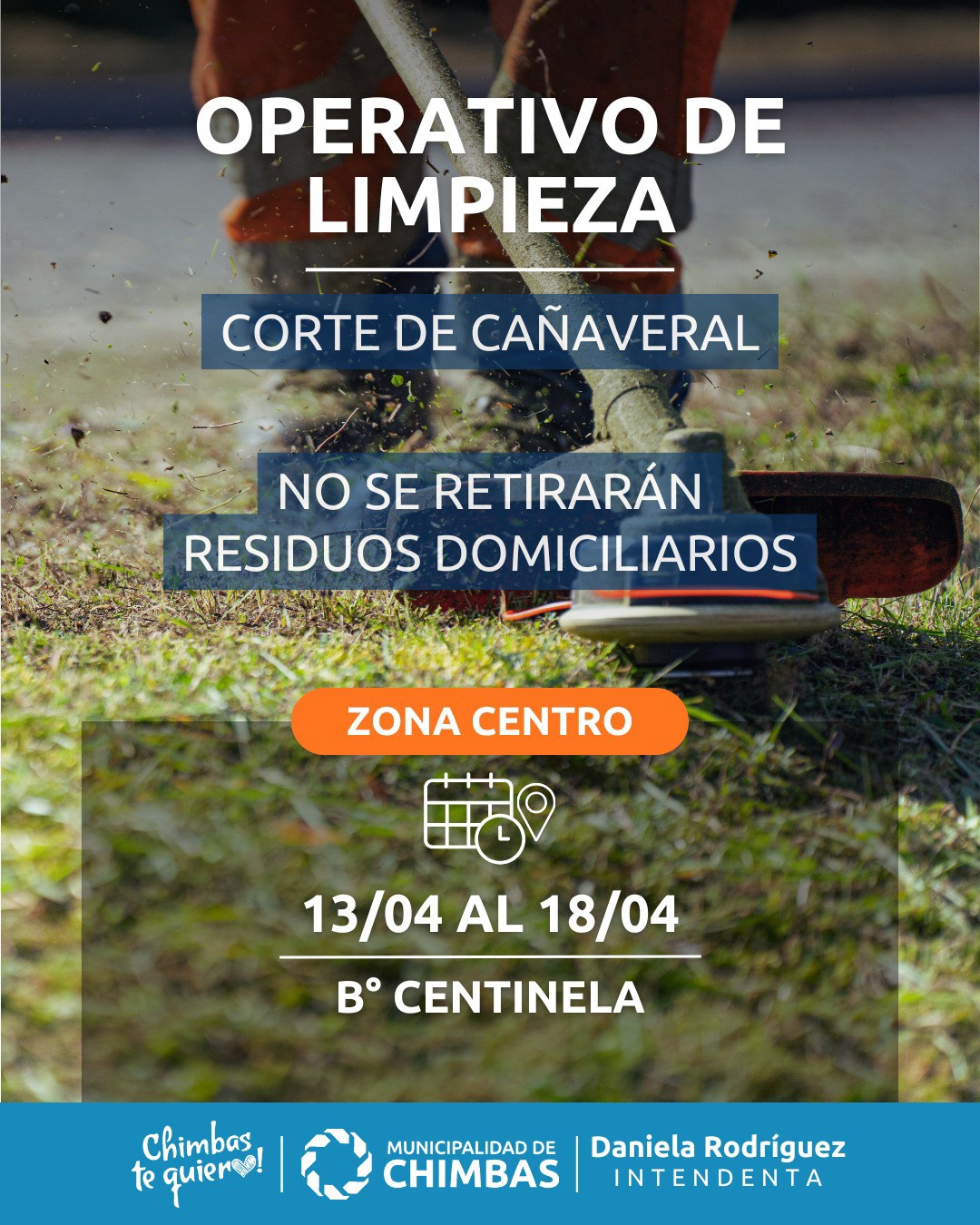 Desde el municipio estaremos realizando un operativo de limpieza, corte de pasto y acequias con el objetivo de mantener en condiciones nuestros espacios.