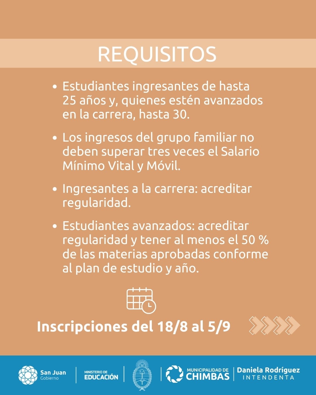 Recordá que para acceder al beneficio deberás tener certificado del alumno regular y que la suma de los ingresos percibidos por grupo familiar sea menor a tres salarios mínimos vitales móviles.