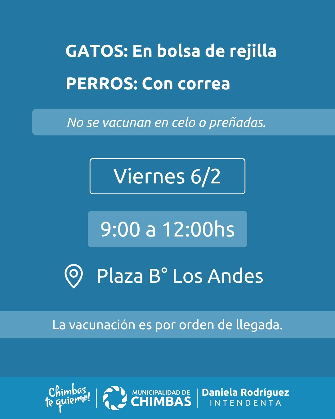 Estaremos realizando servicio de vacunación antirrábica en la Plaza del Barrio Los Andes.
