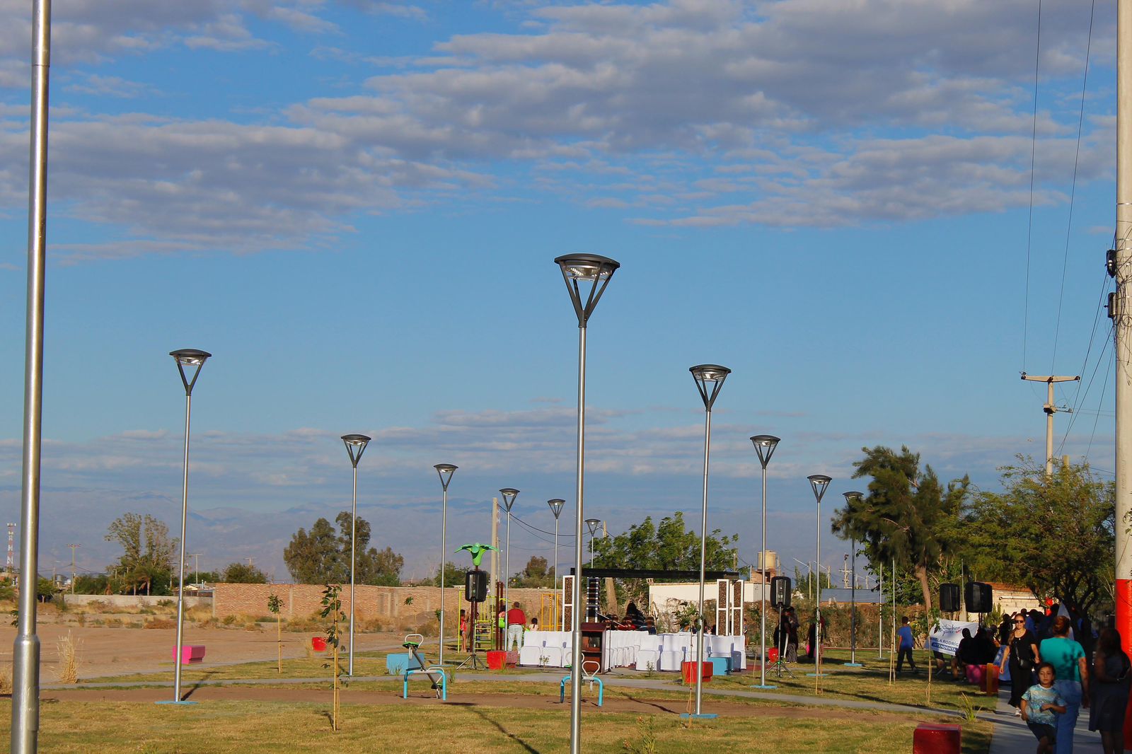 La intendenta Municipal de la Ciudad de Chimbas, Daniela Rodríguez, junto a los vecinos del Barrio Los Tamarindos, dejaron inaugurada la nueva plaza del lugar.