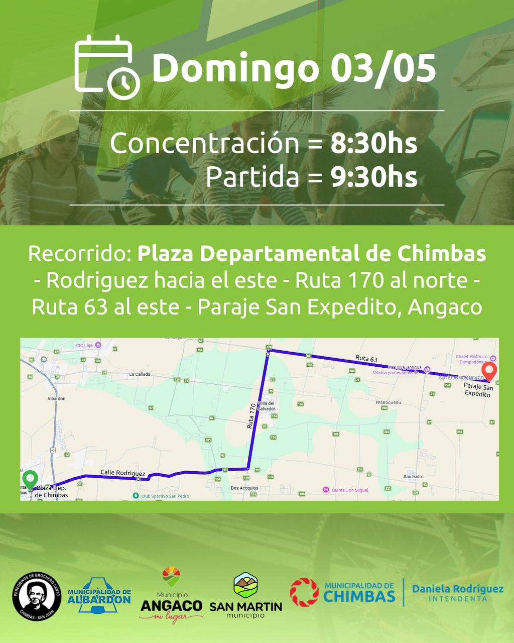 La largada principal será en Chimbas, desde la Plaza Departamental. En simultáneo, habrá puntos de partida en los otros departamentos: en Albardón, desde el Parque Latinoamericano, en San Martín, con concentración sobre Ruta Eva Perón y calle Quiroga y en Angaco, desde el edificio municipal, para finalmente llegar hasta el santuario en una gran columna de fieles al santo de las causas justas y urgentes, uniendo así los cuatro departamentos en una jornada de Fe y deporte en familia, promoviendo valores de unión, tradición y participación al tiempo que fortalece los lazos entre comunidades vecinas.