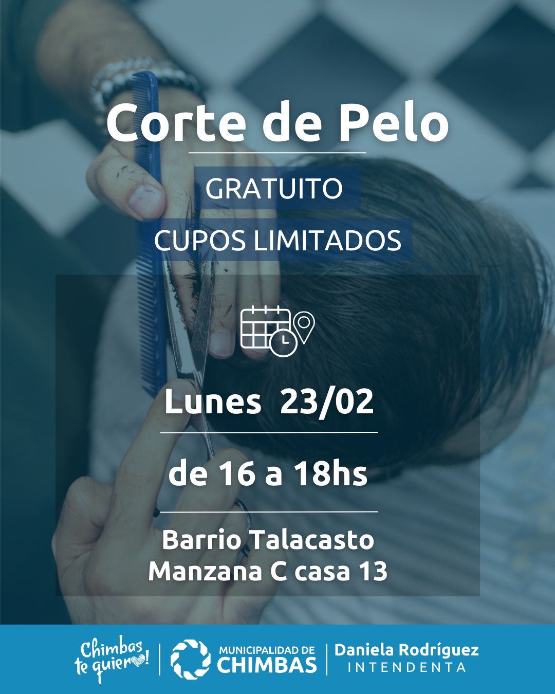 Este Lunes 23 de febrero, estaremos realizando corte de cabello de forma gratuita (mayores de 6 años y adultos) en el Barrio Talacasto.