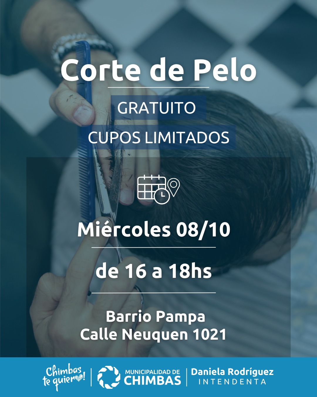 Este miércoles 8 de octubre, estaremos realizando corte de cabello de forma gratuita (mayores de 6 años y adultos) en el Barrio Pampa.