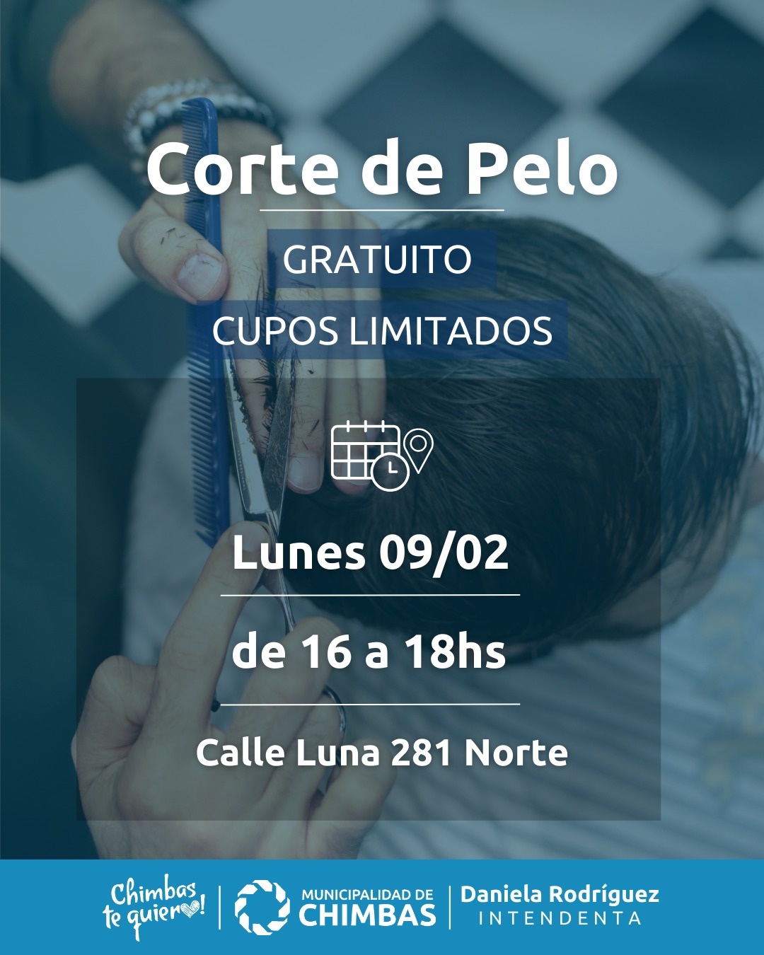 Este lunes 9 de febrero, estaremos realizando corte de cabello de forma gratuita (mayores de 6 años y adultos) en la calle Luna.