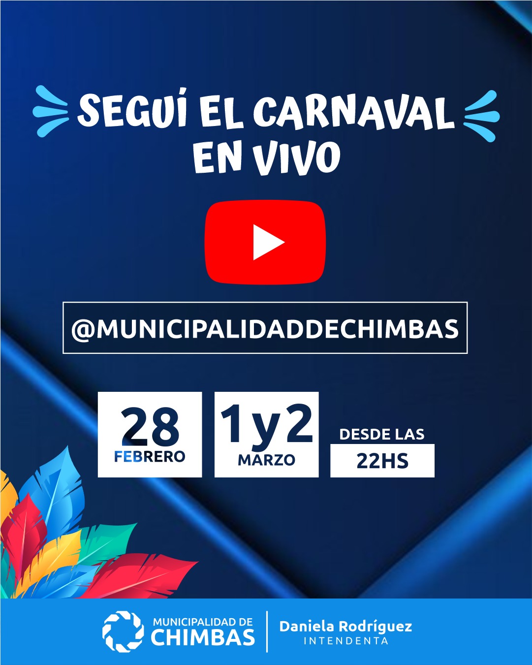 Aprovechá y miralo en vivo y en directo a través de nuestro canal de YouTube y seguilo todas las noches para vivir la magia y el color del Carnaval de Chimbas, el Carnaval de San Juan.