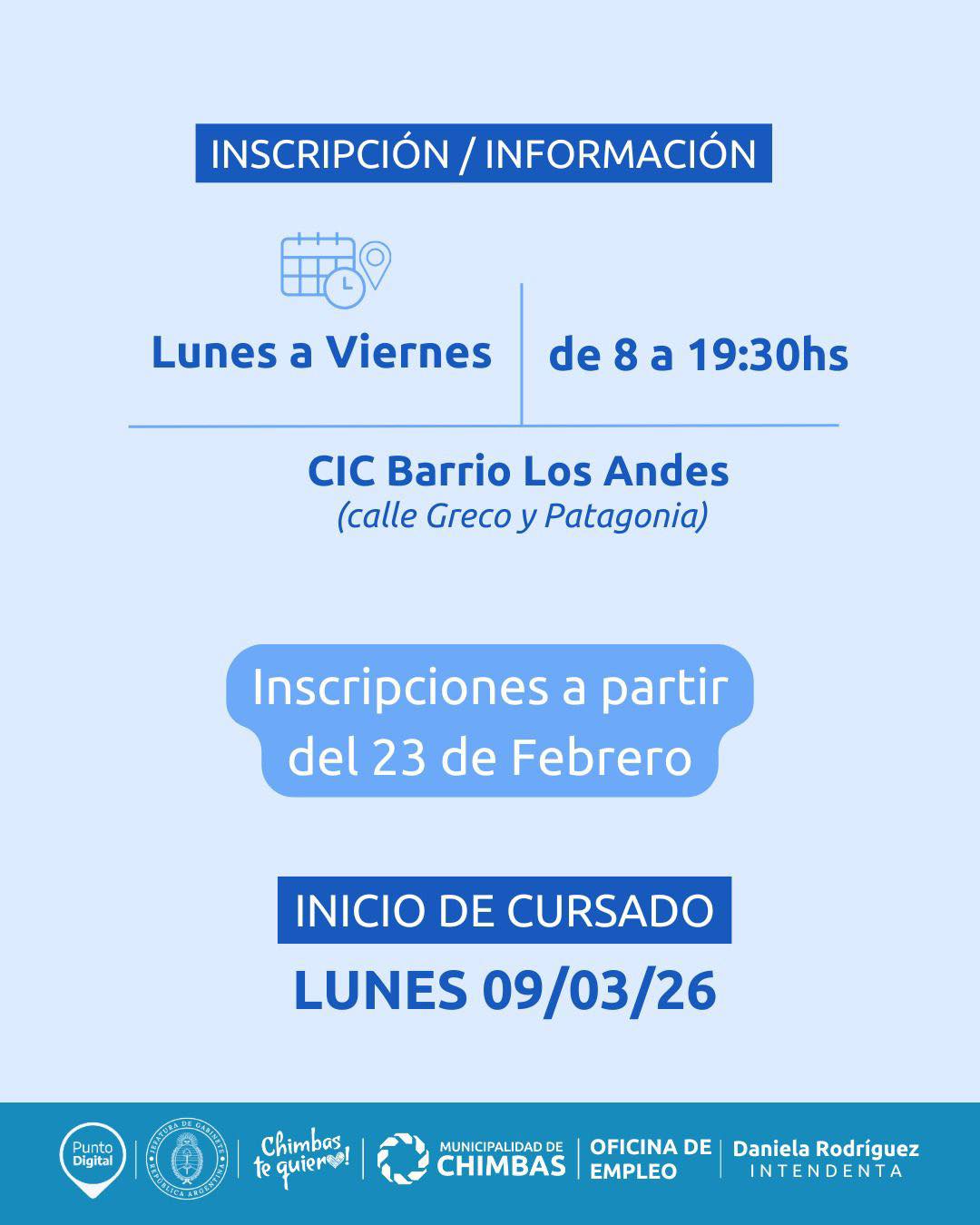 Lugar: Punto Digital, CIC del Barrio Los Andes, ubicado por calle Greco y Patagonia.