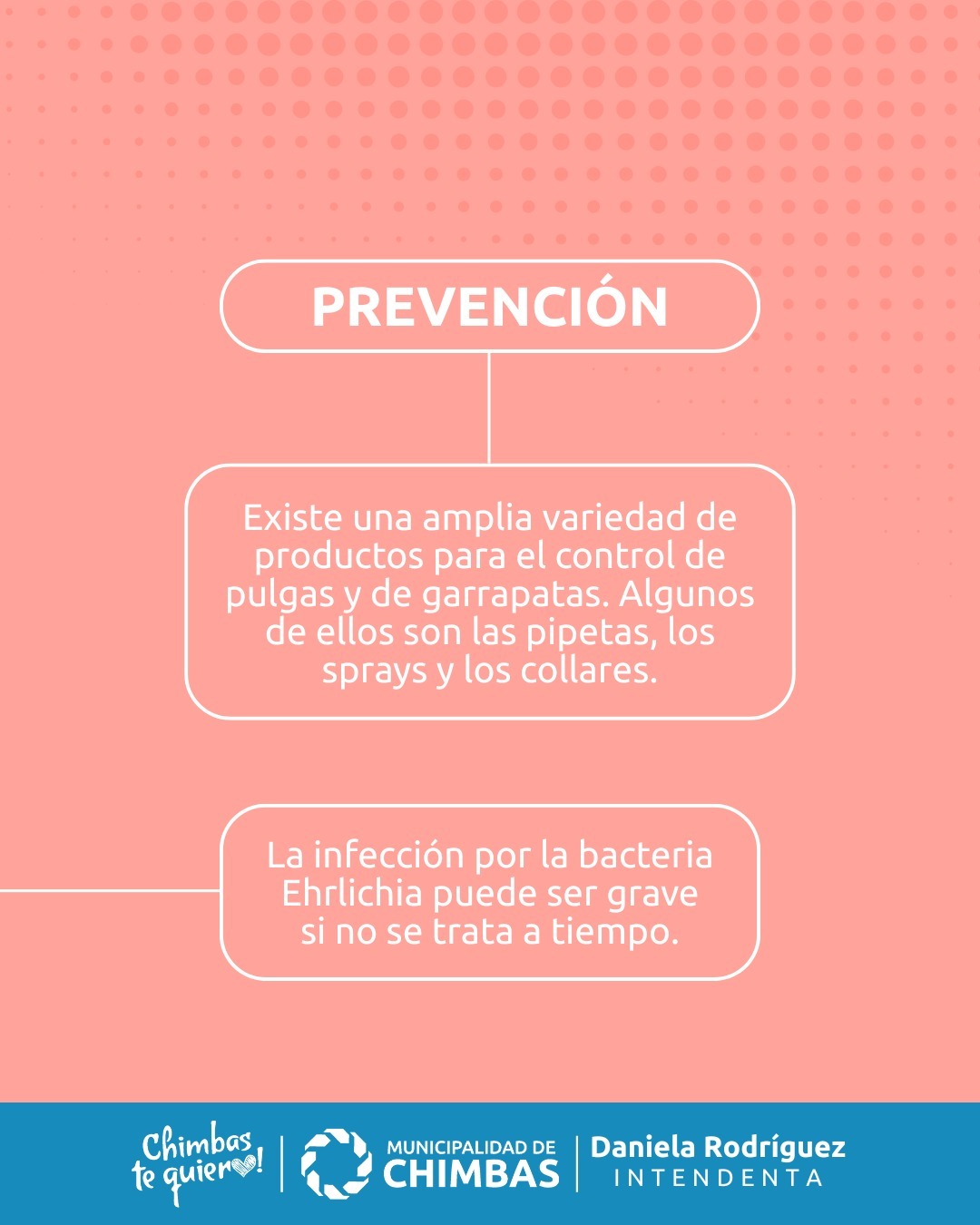 CAMPAÑA CONTRA GARRAPATAS Y PULGAS Domingo, 30 de Octubre | 2025 Prensa CAMPAÑA CONTRA GARRAPATAS Y PULGAS Dejamos los síntomas que puede tener tu mascota si tiene la enfermedad de Ehrlichiosis, además de los síntomas en las personas y como prevenirla.¡Cuidá a tus animales de compañía.