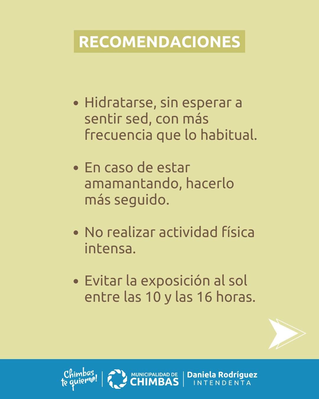 PREVENCIÓN ANTE LA OLA DE CALOR Domingo, 16 de Diciembre | 2024 Prensa PREVENCIÓN ANTE LA OLA DE CALOR Les dejamos algunas recomendaciones para tener en cuenta ante las intensas olas de calor. En las gráficas encontrarás toda la información necesaria.