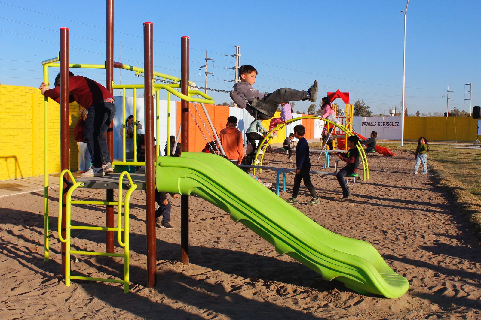 A su vez se colocaron juegos infantiles consistentes en mangrullo, columpios y trepador. Por otro lado, se instalaron 6 columnas de dos brazos con luminarias. Además, se realizó la pintura general y reacondicionamiento del entorno de la plaza, y construcción de un muro de contención para el resguardo de los pequeños.